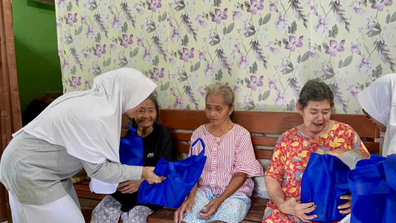 Relawan berharap bantuan ini bisa membantu kebutuhan operasional panti serta memberi kehangatan untuk penghuninya. “Oma, ini kami bawakan minyak kayu putih dan minyak tawon yang Oma biasa pakai kalau lagi gak enak badan. Kalau Oma pakai ini, ingat kami dan doakan kami ya Oma,” ucap Yan Iko seraya menunjukkan isi tas biru bingkisan untuk Oma Rumini yang sudah 6 tahun menghuni panti ini.