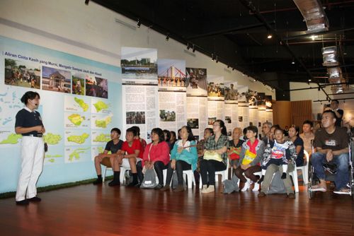 Sejak pagi hari Liwan Shixiong sudah datang ke wilayah pemukiman Tanah Pasir untuk menjemput seorang Gan En Hu bernama Erik (25), beserta ayahnya (Iskandar). Walaupun sudah terlihat lebih sehat dan gemuk, namun kedua kaki Erik masih tetap seperti sebelumnya tidak dapat berdiri dan berjalan sendiri. Tinggal di sebuah kos kecil di lantai 2 membuat Pak Iskandar harus menopang Erik di punggungnya dan turun perlahan-lahan melalui tangga yang sempit dan curam. Melihat kondisi seperti itu Liwan Shixiong pun terharu dan tidak tega melihatnya. “Saya sudah meminta mereka untuk cepat cari tempat sewa di bawah, sudah sangat berat beban mereka,” ungkap Liwan Shixiong relawan yang aktif di misi Amal Tzu Chi. Sampai di Aula Jing Si PIK, Liwan Shixiong merangkul Erik duduk di kursi roda dan membawanya untuk menunggu peserta lainnya yang sedang dalam perjalanan. Setelah semuanya berkumpul, tur pun dimulai.