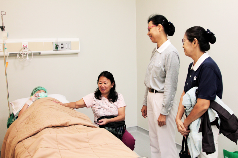 Para relawan Tzu Chi dari komunitas He Qi Barat 2 dengan tulus mendampingi Djioe Nie bertemu dengan dokter.