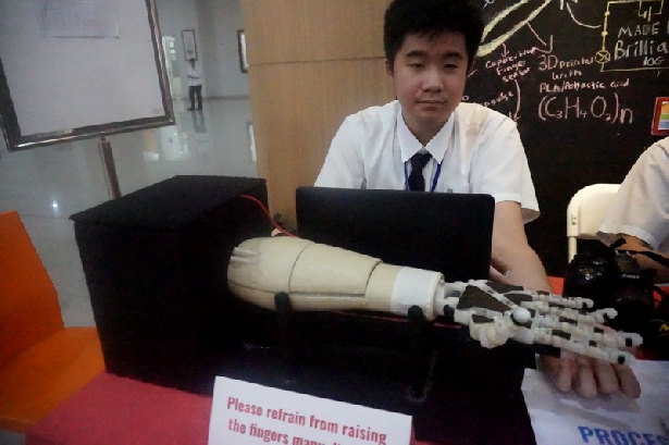 “Alat ini buat yang kehilangan tangan akibat kecelakaan atau yang lahir tanpa tangan, mereka bisa replace pakai ini,” jelas Brilliant pada pameran Personal Project Secondary School, Sekolah Tzu Chi Indonesia, Jumat 12 April 2019.