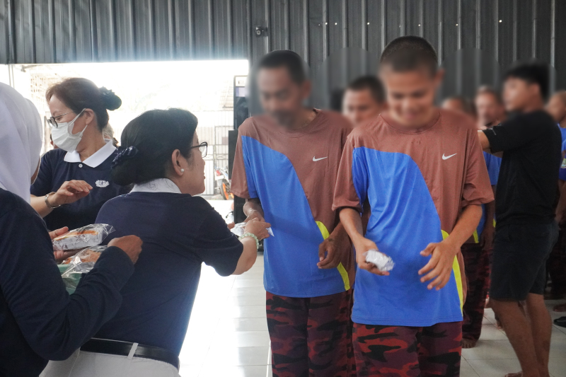 Kunjungan dari Tzu Chi memang selalu dinanti. Pagi itu para relawan tak datang dengan tangan kosong. Berbagai bantuan disalurkan, mulai dari satu ton beras, obat-obatan, 200 buah roti, hingga 4 dus DAAI Mi, dan 2 peti telur. Tak ketinggalan, 150 stel baju olahraga baru turut dibagikan, yang langsung dikenakan para penghuni.