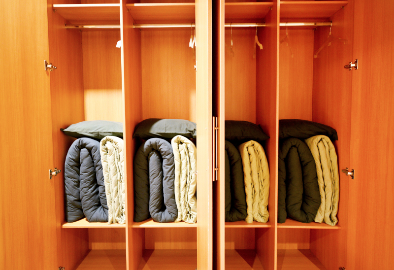 Perlengkapan tidur para relawan tersimpan rapih dalam lemari di setiap kamar. Arahan ini tidak hanya bersifat teknis, tetapi juga mengandung nilai filosofis, seperti bagaimana merapikan, melipat, dan menyimpan perlengkapan tidur dengan penuh kesadaran. Di sinilah letak keindahan tata krama budaya humanis Tzu Chi.