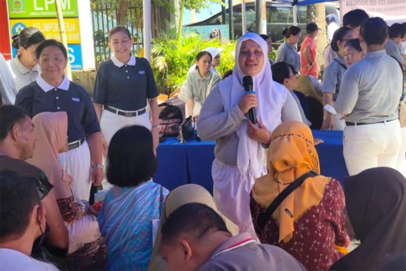 Nuraisyah memberikan sosialisasi mengenai Yayasan Buddha Tzu Chi kepada para warga, yang memberi dengan cinta kasih universal tanpa membeda-bedakan agama.