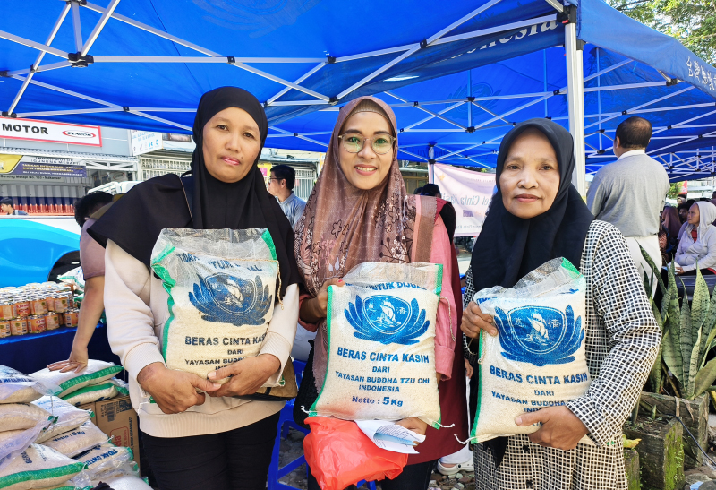 Tzu Chi Makassar menyalurkan 300 sak beras dan kebutuhan pokok kepada warga Kelurahan Pisang Selatan dan Pisang Utara dalam kegiatan bakti sosial pembagian paket cinta kasih idulfitri yang digelar pada Minggu, 15 Maret 2026, di Kantor Kelurahan Pisang Selatan.