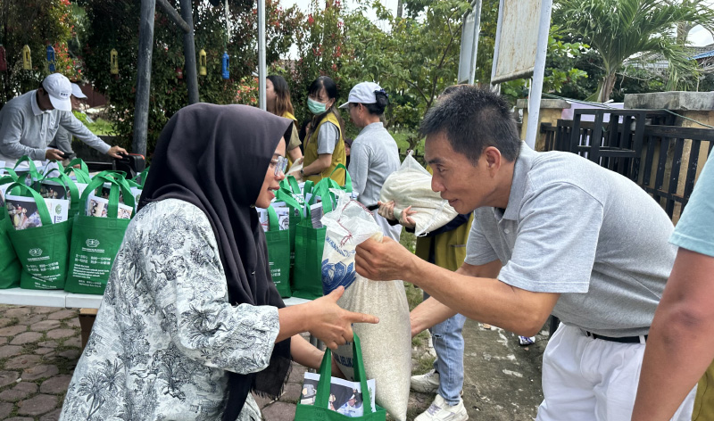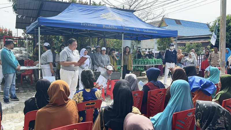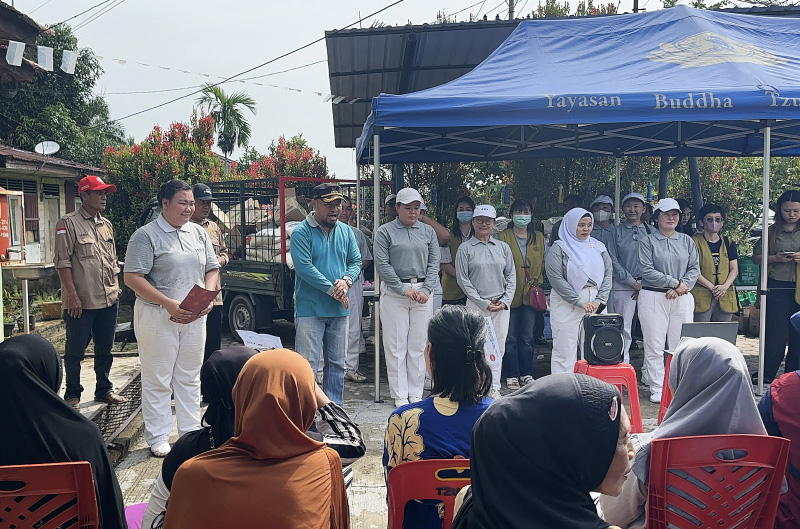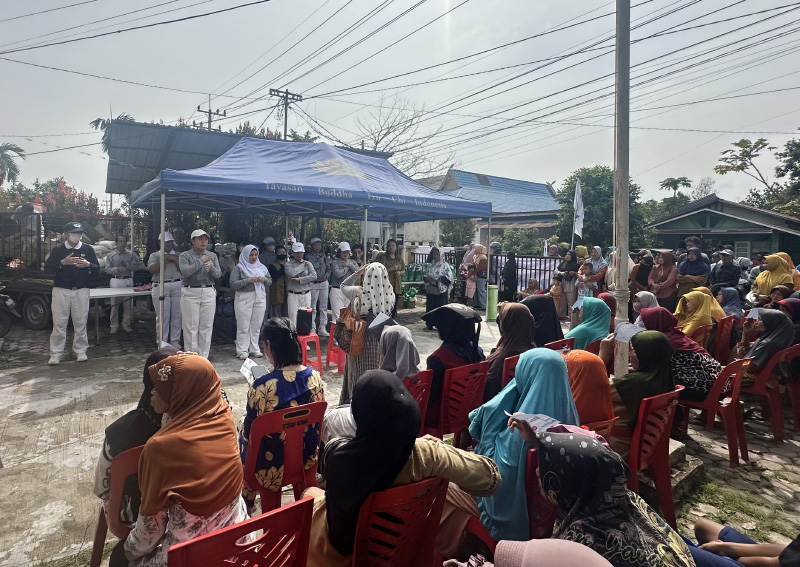 Para relawan Tzu Chi di Komunitas Dumai menyalurkan sebanyak 205 paket sembako kepada warga, Minggu 14 Desember 2025.