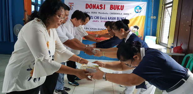 Tzu Chi Indonesia kembali memberikan donasi buku kepada SLB Kasih Bunda, Senin 25 Februari 2019. Enam relawan Tzu Chi dari Komunitas Hu Ai Jembatan Lima hadir untuk membantu acara ini.
