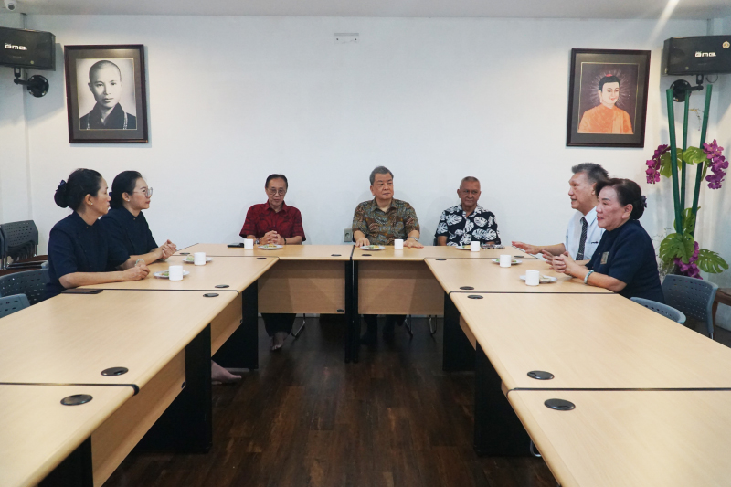Relawan Tzu Chi Medan menyambut hangat kehadiran perwakilan donatur The Vukasin Family Foundation of Peerless Coffee & Tea, yang akan menyerahkan donasi kepada Tzu Chi Medan.