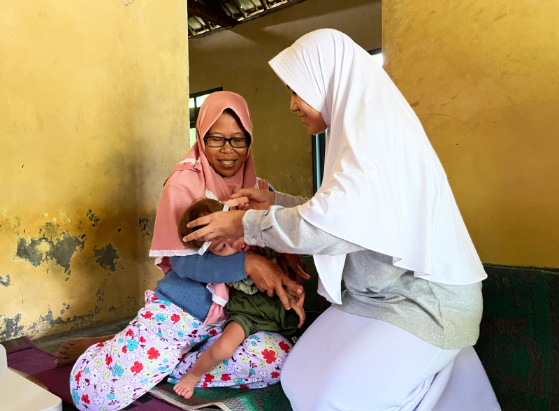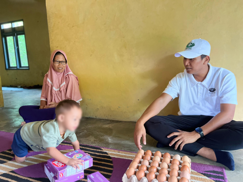 Azmi Faiz Almaheer, balita berusia 2 tahun 6 bulan yang lahir dengan sindrom Down (DS) dan kelainan jantung bawaan mengalami stunting. Tubuhnya lebih kecil dan lebih pendek dari anak lain seusianya. Ia juga belum bisa berjalan. Relawan Tzu Chi di Xie Li Bangka Belitung dari Perkebunan Tanjung Rusa Estate berkolaborasi dengan Puskesmas Membalong memberikan bantuan makanan tambahan (PMT) serta dukungan dan perhatian untuk Azmi dan keluarganya.