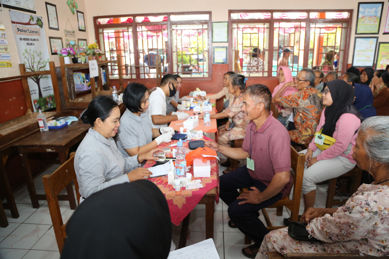 Nenek Tiwi datang dengan beragam keluhan, mulai dari gula, asam urat, lambung, hingga penglihatannya yang tak lagi awas. Ia bersyukur mendapat layanan pemeriksaan dari dokter. “Saya senang sekali ada layanan ini, mudah-mudahan saya bisa sembuh, bisa kerja. Sekiranya ada yang dimakan kalau bisa kerja,” ujarnya.