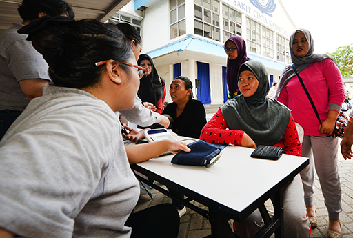 Een (42), salah satu warga Rusun Cinta Kasih Tzu Chi Cengkareng memeriksakan kesehatannya dalam kegiatan festival kesehatan dalam rangka HUT RSCK ke-11.
