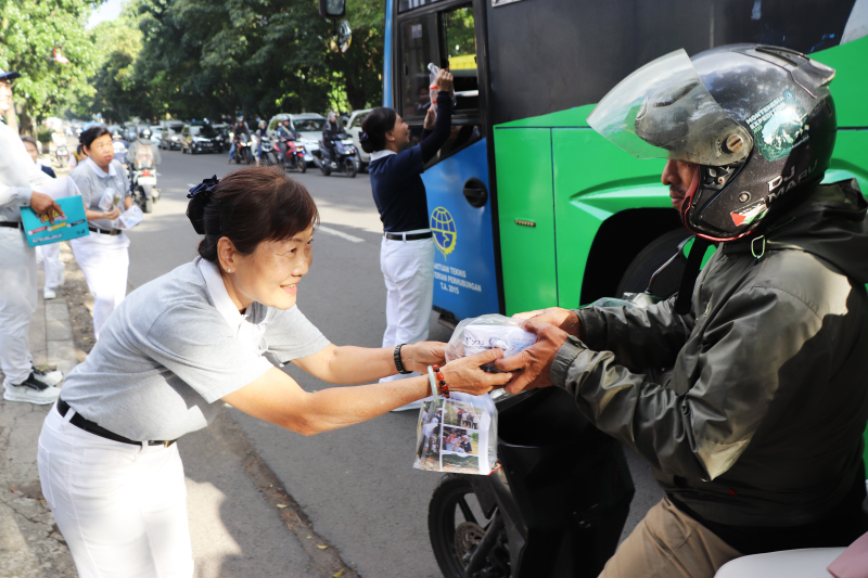 Pembagian takjil ini menyasar masyarakat yang masih berada di perjalanan saat waktu berbuka puasa tiba, seperti pengemudi ojek daring, sopir angkutan umum, serta warga yang belum sempat tiba di rumah.