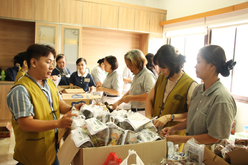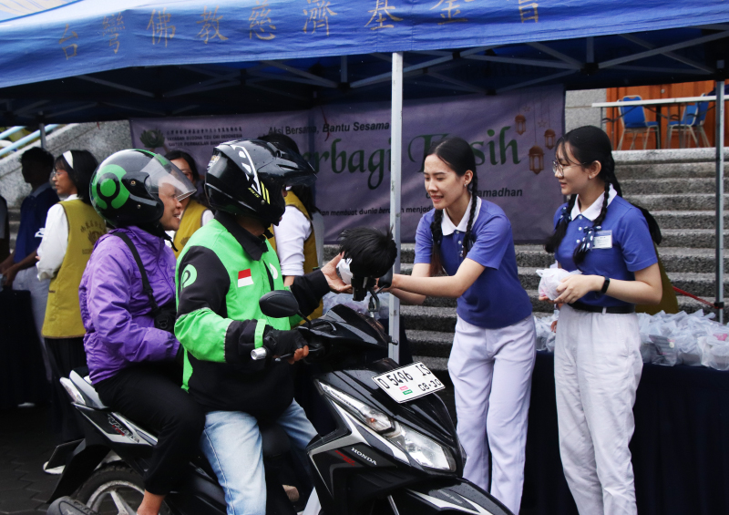 Relawan muda Tzu Chi, turut berpartisipasi dengan menyiapkan 500 paket takjil untuk dibagikan kepada warga.