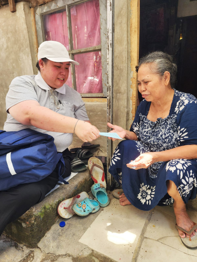 Relawan menyerahkan kupon secara langsung kepada para lansia sekaligus memastikan bantuan yang diberikan tepat sasaran.