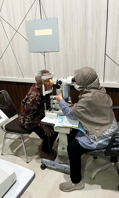 Sebelum tindakan di RS Bratanata, Jambi, para warga yang dibantu menjalani pemeriksaan awal (screening) sebelum menjalani operasi katarak.