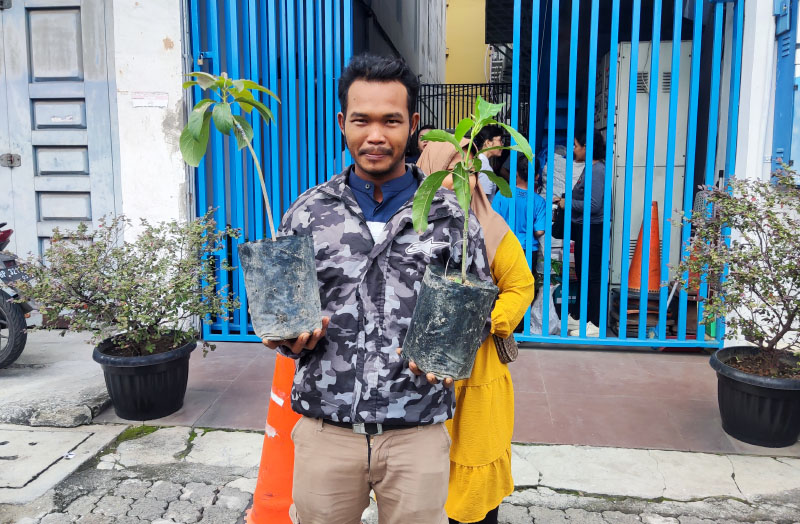 Relawan membagikan bibit tabebuya, mangga, durian, dan alpukat kepada para Gan En Hu.