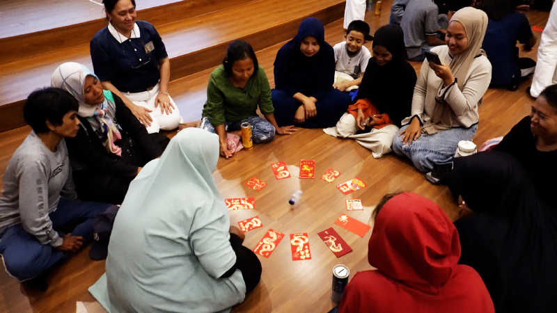Para peserta diajak untuk bermain games satu per satu bergiliran memutar botol di tengah, dimana ujung botol berhenti, itulah angpao yang didapat.