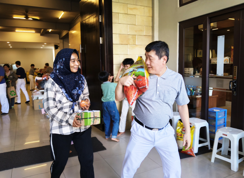 Diakhir ramah tamah para penerima bantuan meneriama bantuan mereka masing-masing yang dibantu oleh relawan Tzu Chi. Bantuan khusus yang diberikan berbeda-beda namun masing-masing mendapatkan beras 10 kg.
