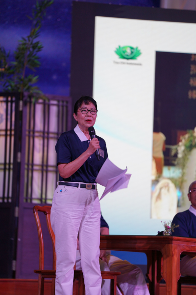 Chen Ming Zhu berbagi inspirasi. Relawan senior dari Taichung ini mengenang awal perjalanannya sejak mendengar siaran radio Master Cheng Yen tahun 1987.