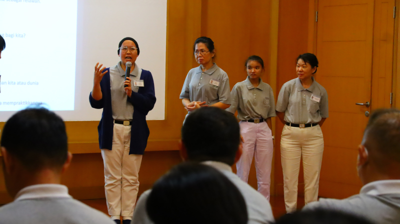 Puncak dari seluruh pembinaan ini bermuara pada sebuah kesadaran spiritual yang mengubah total paradigma relawan terhadap peran mereka. Livia menutup penjelasannya dengan sebuah kalimat yang mengunci seluruh makna persatuan hati: “Tzu Chi membutuhkan saya, bukan saya dibutuhkan Tzu Chi.” Kesadaran bahwa ladang pengabdian inilah yang sesungguhnya mendewasakan batin relawan menjadi bahan bakar utama bagi para peserta untuk memulai langkah pengabdian yang lebih besar. Semangat inilah yang kemudian beresonansi kuat dan mengalir dalam sanubari setiap relawan, yang jejak batinnya tercermin melalui berbagai untaian pengalaman nyata dalam sesi sharing para peserta.