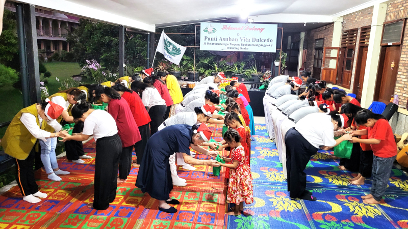 Pemberian bingkisan Natal kepada anak anak asuh sebagai tanda cinta kasih universal tanpa membeda bedakan.