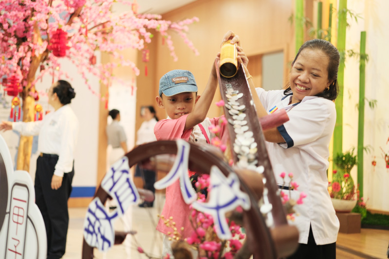 Relawan mewakili Master Cheng Yen membagikan Angpao Berkah dan Kebijaksanaan, sebagai pengingat bagi setiap insan untuk terus menggarap ladang berkah serta memupuk kebijaksanaan secara beriringan.