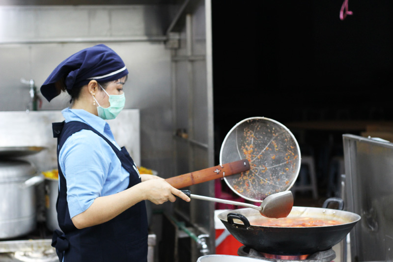 Saat matahari belum terbit, para relawan konsumsi telah sibuk mempersiapkan hidangan vegetarian untuk makan siang bersama.
