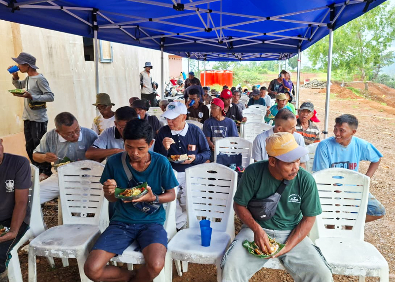 Tjioe Soh Khiem memasak dengan penuh cinta kasih untuk para pekerja pembangunan. Setiap hidangan disiapkan dengan ketulusan sebagai wujud kepedulian kepada sesama.