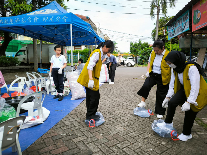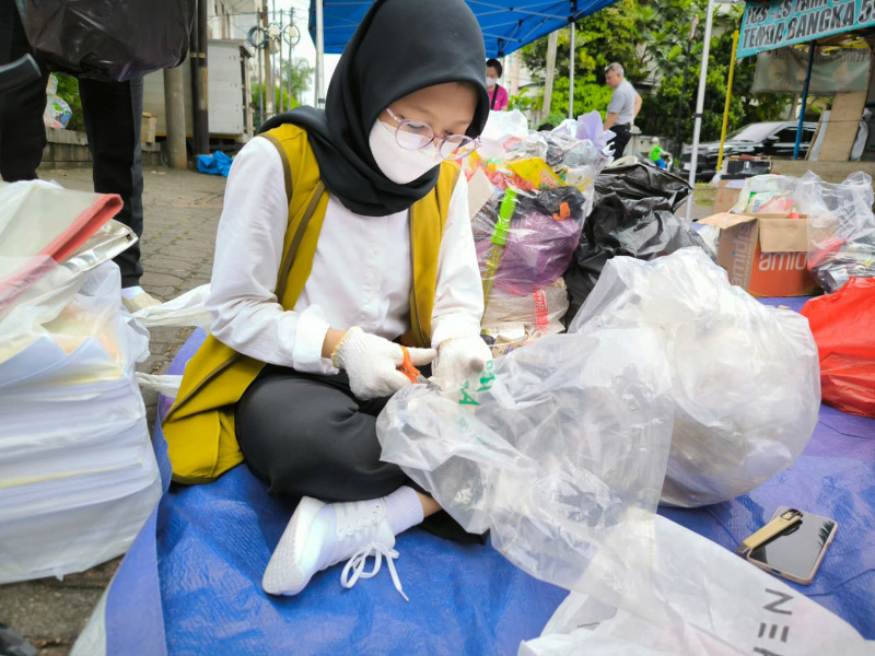 Dengan penuh ketekunan, Anisa salah satu mahasiswi Andalusia Tzu Chi Hospital mengikuti kegiatan Pelestarian Lingkungan yang diadakan oleh relawan Tzu Chi komunitas Hu Ai Citra.