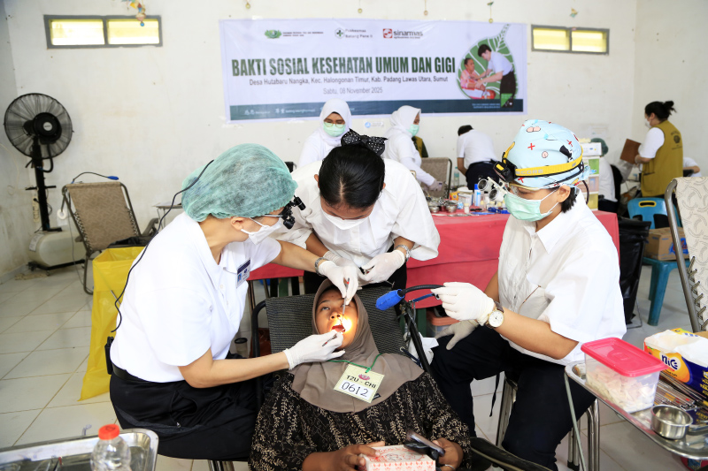 Relawan Tzu Chi Cabang Sinar Mas dari komunitas Xie Li Sumut Utara dan Selatan mengadakan Bakti Sosial (Baksos) pengobatan gratis yang meliputi pemeriksaan kesehatan umum dan gigi bagi warga Desa Hutabaru Nangka, Kec. Halongonan Timur, Kab. Padang Lawas Utara, Sumatra Utara, pada 8 November 2025.