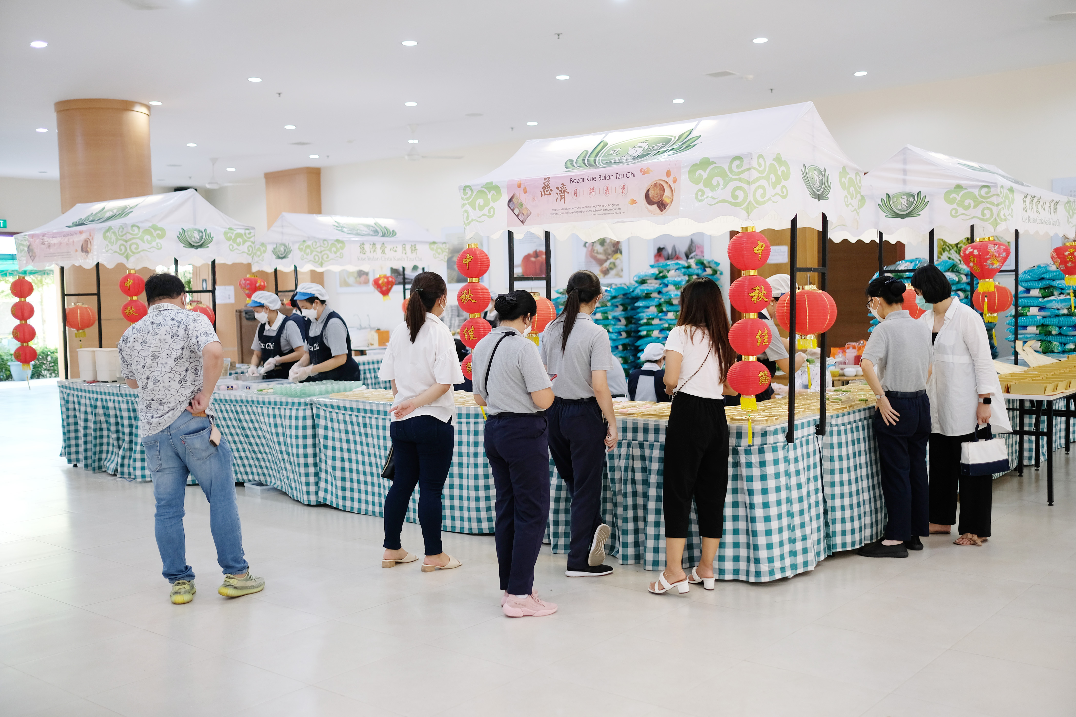 Suasana kemeriahan Bazar Kue Bulan Cinta Kasih Tzu Chi Batam kembali dirasakan. Sejak tanggal 16 hingga 20 September 2021, Tzu Chi Batam mengadakan Bazar Kue Bulan dengan sistem penjualan Pre-Order (PO) dan penjualan langsung untuk mengobati kerinduan masyarakat setia yang sudah berlangganan setiap tahunnya.