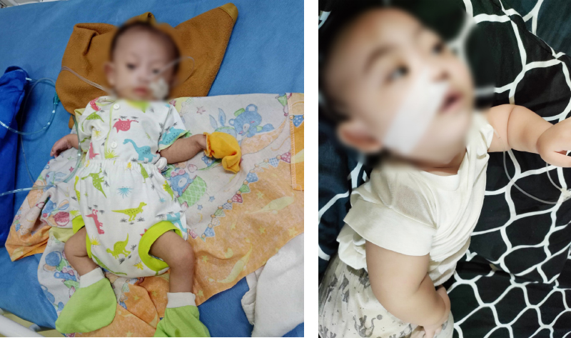 Kondisi Adik Dzikri sebelum mengenal Tzu Chi dan menerima bantuan susu Infratini sebanyak 4 kaleng @100 gram (kiri). Kondisi Adik Dzikri saat ini telah memenuhi kriteria medis untuk menjalani operasi (Kanan).