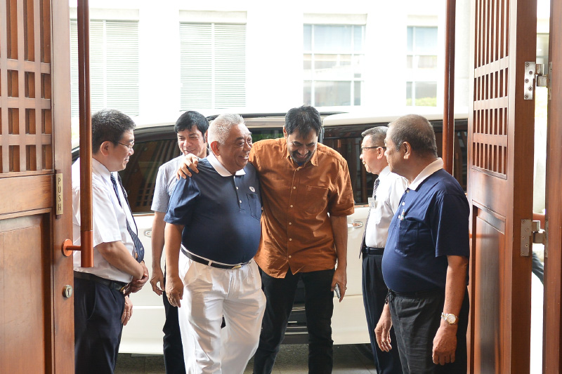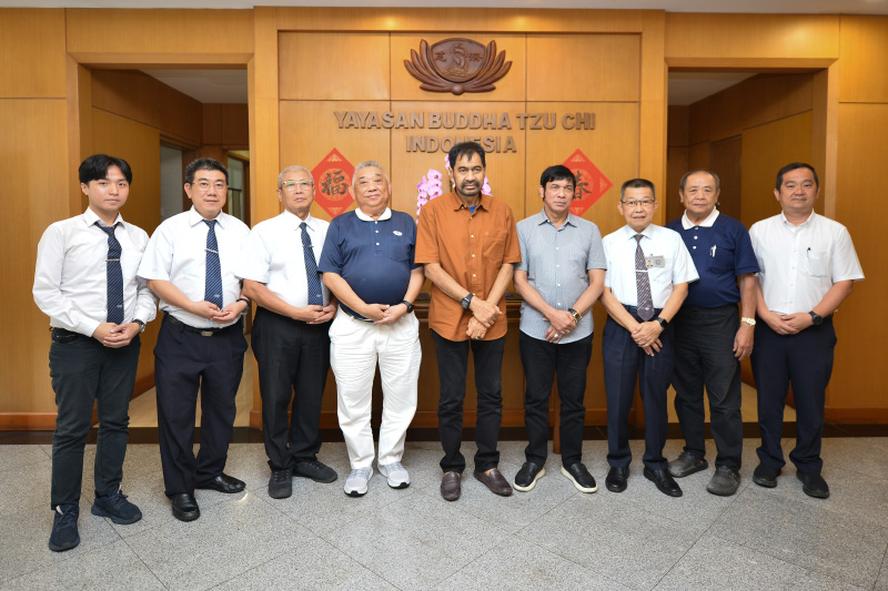 Ricky Budiman bersama relawan Tzu Chi Indonesia lainnya menyambut dengan hangat kedatangan Gubernur Aceh Muzakir Manaf saat berkunjung ke Tzu Chi Center, PIK, Jakarta Utara.