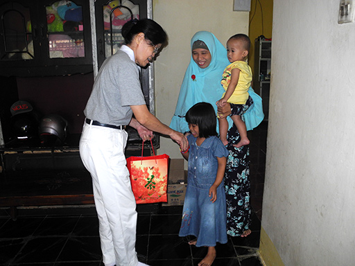 Relawan Tzu Chi,Nani Sutanto, memberikan hadiah kepada Ita karena ia telah menjalani pengobatan dengan baik dan menuruti semua anjuran dokter, orang tua, dan relawan.