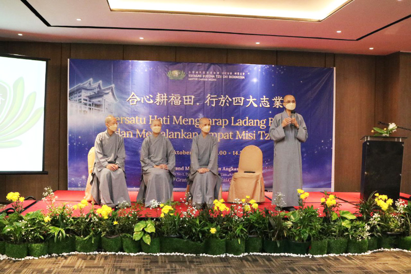 Pada saat gathering relawan, empat Shīfu dari Griya Jing Si Taiwan juga menjadi pembicara dihadapan relawan Tzu Chi di Sumatera Utara dan masyarakat umum yang berjumlah 290 peserta.
