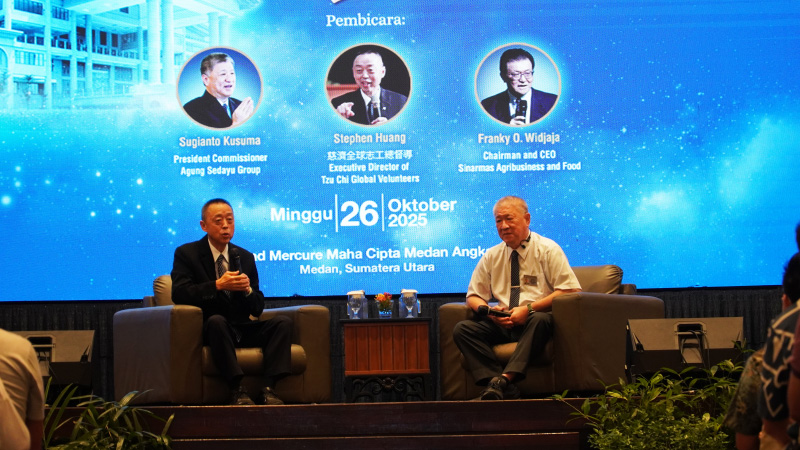 Direktur Eksekutif Relawan Global Tzu Chi, Stephen Huang dan Wakil Ketua Tzu Chi Indonesia, Sugianto Kusuma menjadi pembicara utama dalam gathering pengusaha di Kota Medan.