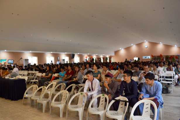 tua, murid, dan guru Sekolah Cinta Kasih Tzu Chi menyaksikan pertunjukkan pada