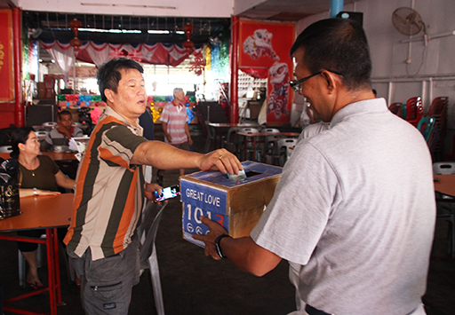 Warga yang kebetulan berada di toko yang di datangi relawan Tzu Chi untuk mengumpulkan celengan bambu juga ikut bersumbangsih. Kehadiran celengan bambu ditanggapi dengan positif oleh warga sekitar.