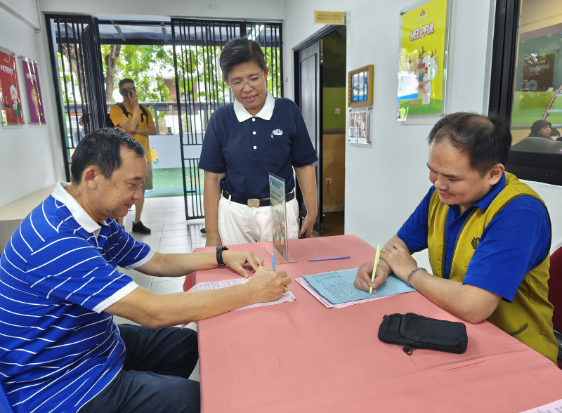 Guito Ondara tampak mendaftar untuk mengikuti donor darah yang digelar di Sekolah Ekayana Dharma Budhi Bhakti, sebelum menjalani tahapan berikutnya.