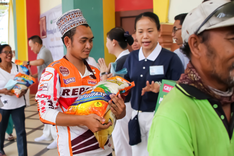 Sebagian relawan bertugas menyambut kedatangan para pahlawan kebersihan dengan ramah. Ada yang memeriksa kupon, mengarahkan peserta untuk duduk di tempat yang telah disediakan, serta membantu proses pengambilan paket sembako. Beberapa relawan lainnya juga sigap membantu para penerima yang mengalami kesulitan saat membawa paket bantuan.