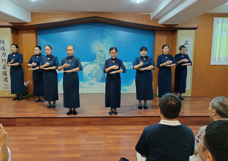 Peserta pelatihan disuguhi peragaan isyarat tangan lagu Xin Yuan (Ikrar Hati) yang indah oleh relawan tim isyarat tangan.