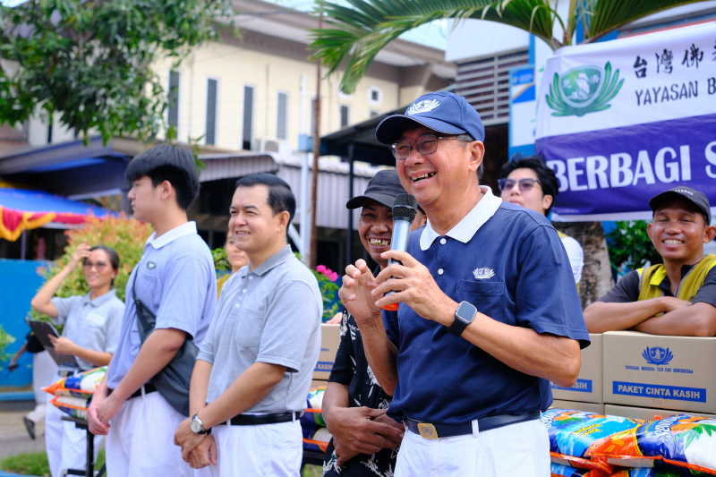 Ketua Tzu Chi Batam, Rudi Tan, menyampaikan sukacita karena dapat menjalin jodoh baik dengan warga melalui kegiatan Pembagian Sembako Cinta Kasih.