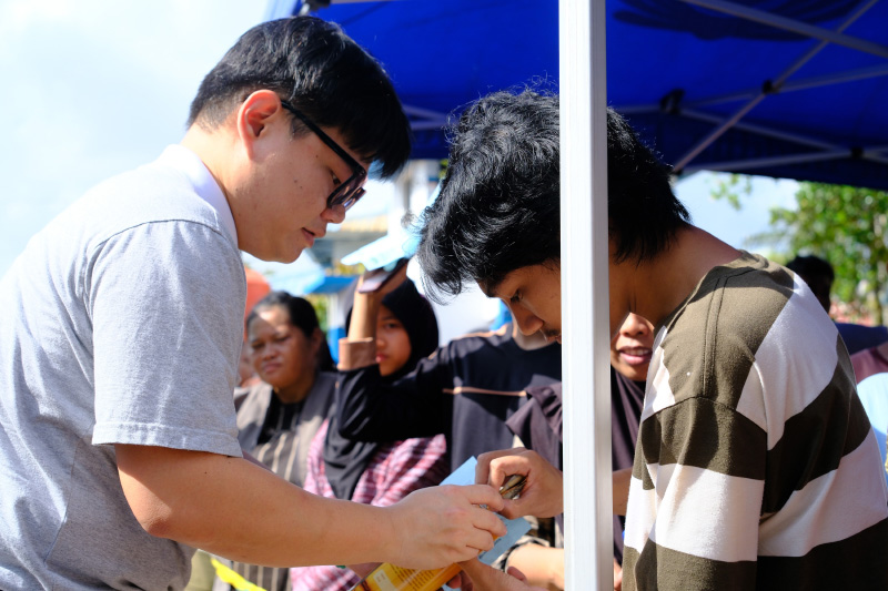 Ratusan relawan Tzu Chi turut terlibat dalam rangkaian kegiatan, mulai dari pembagian kupon, pengemasan sembako, hingga penyaluran bantuan kepada warga.