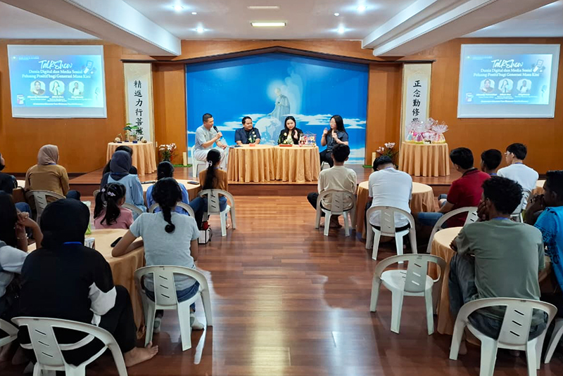 Talkshow yang dihadiri oleh Ghandy November, Silvia Decmery Natalia Gea dan Stephanie yang dimoderator oleh relawan Tzu Chi Medan, Siswanto Tam.