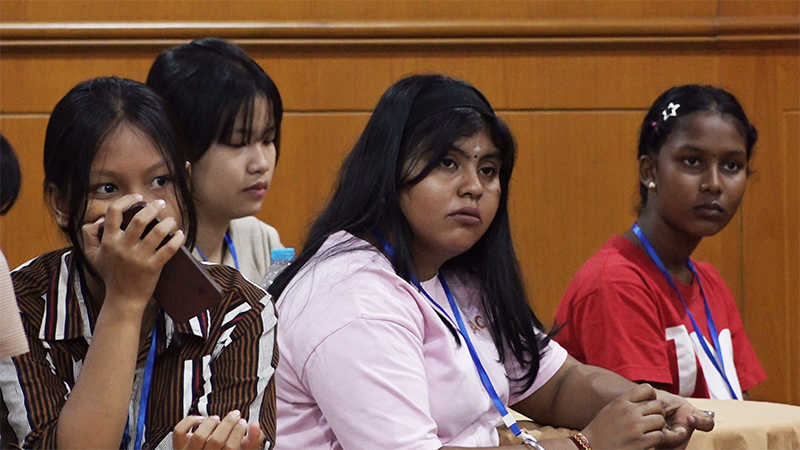 Keisya Mirahel (tengah) mendengarkan dengan seksama apa yang disampaikan oleh para pembicara.