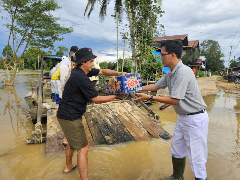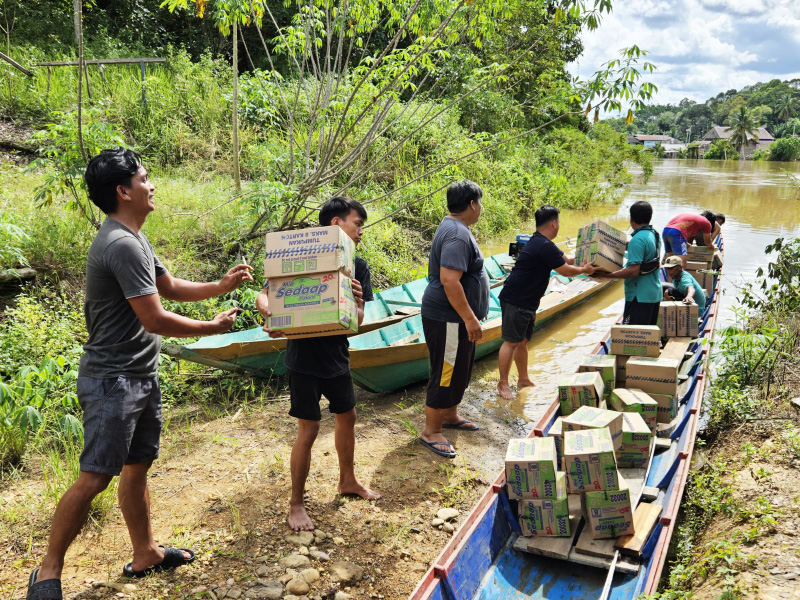 Sabtu, (13/12/25) relawan Tzu Chi di Xie Li Kalimantan Timur 2 Rantau Panjang bersama anggota Polsek Muara Wahau dan anggota Koramil yang diwakili oleh Brigpol Ardiansyah, Sertu La Ode Darmin, dan Kopda Dwi bersinergi memberikan bantuan ke tiga desa terdampak banjir. Air sungai yang meluap dan akses jalan yang terendam banjir, menjadi tantangan yang tidak mudah untuk dilewati. Bahkan relawan dari unit Rantau Panjang Estate (RPNE) harus balik kanan karena satu-satunya akses penyeberangan yang digunakan untuk ke desa tersebut tidak dapat difungsikan, karena luapan air sungai yang menyebabkan ponton tidak bisa bersandar.