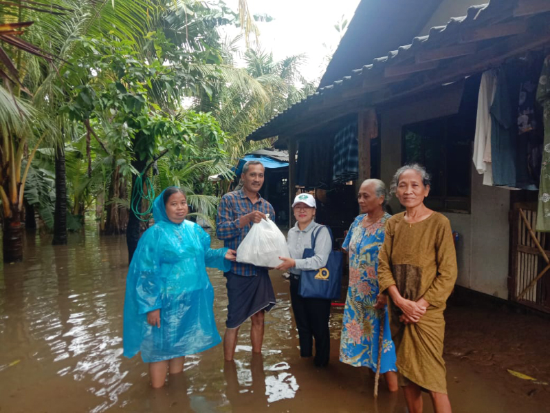 Melihat kondisi ini, relawan Xie Li Pati bersatu hati menyalurkan bantuan nasi hangat untuk untuk warga Desa Alasdowo pada Minggu (18/1/26).
