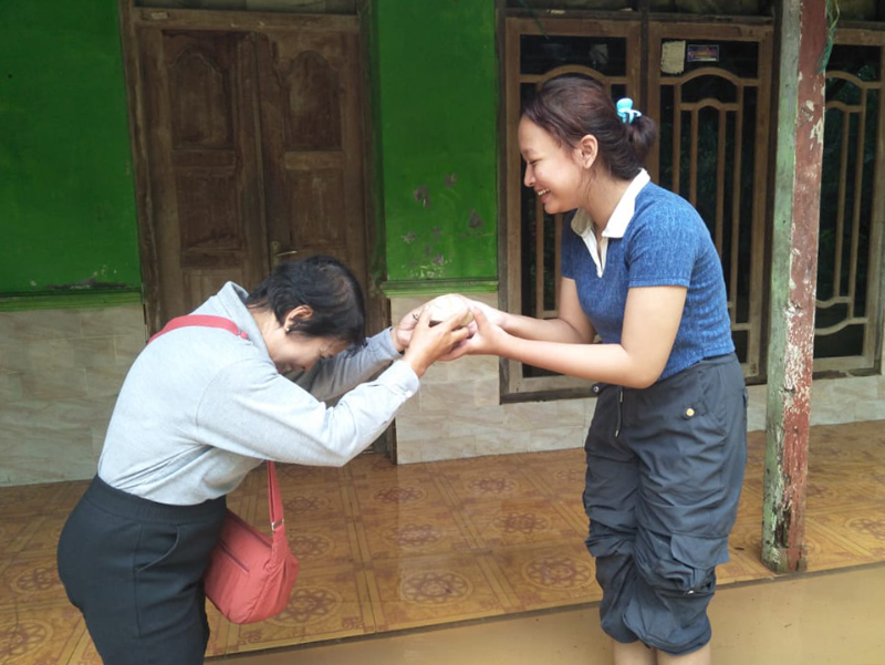 Selain kolaborasi memasak untuk para penyintas, Gemilang dan ibunya, Kriswati juga sama-sama mengikuti kegiatan pembagian nasi hangat dengan antusias. Ia memanfaatkan hari libur sekolahnya dengan bersumbangsih berbuat kebajikan. “Mumpung hari libur juga tidak tiap saat ada kesempatan melakukan kebajikan seperti ini. Jadi kenapa tidak ikut?” ungkap relawan yang tinggal di Desa Jrahi, Kecamatan Gunungwungkal ini.