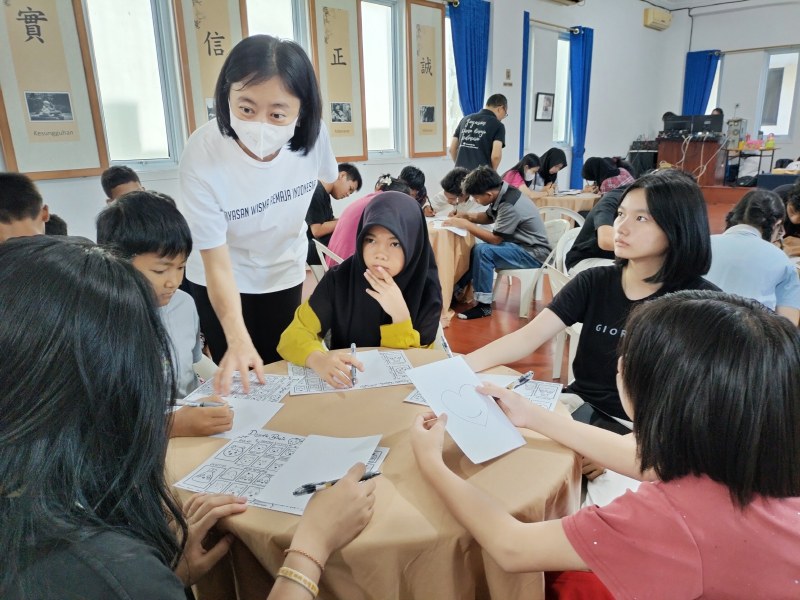 Anak-anak tampak sangat antusias dan berkonsentrasi terhadap tulisan dan gambar masing-masing. Para pengajar Yayasan Wisma Remaja Indonesia dengan sabar mengarahkan dan menunjukkan cara menulis dan menggambar yang benar. Sebagian relawan dan murid-murid Kelas Kata Perenungan Master Cheng Yen ikut membimbing anak-anak sehingga tercipta suasana kebersamaan antara relawan dan anak-anak. Kelas kaligrafi dan doodle art berlangsung selama satu jam dan ditutup dengan apresiasi kepada hasil karya terbaik dan penyerahan suvenir kepada Yayasan Wisma Remaja Indonesia lalu foto bersama. Anak-anak sangat puas dengan hasil karya masing-masing dan memperlihatkannya dengan bangga.
