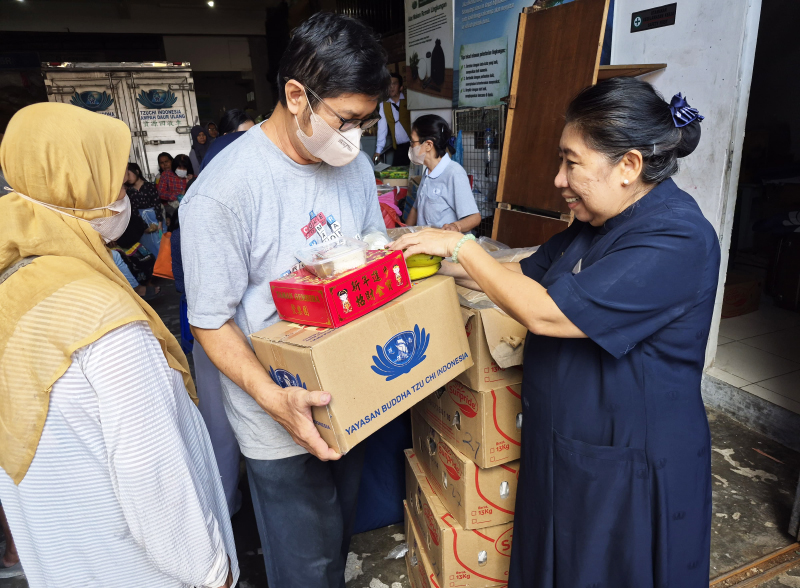 Dalam kesempatan ini, relawan Tzu Chi juga memberikan bingkisan Imlek bagi Gan En Hu yang beragama Buddha.