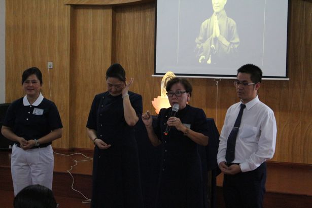 Koordinator kegiatan, Lim Ik Ju bersama relawan Tzu Chi Medan menyambut baik para rombongan dari Batari School.